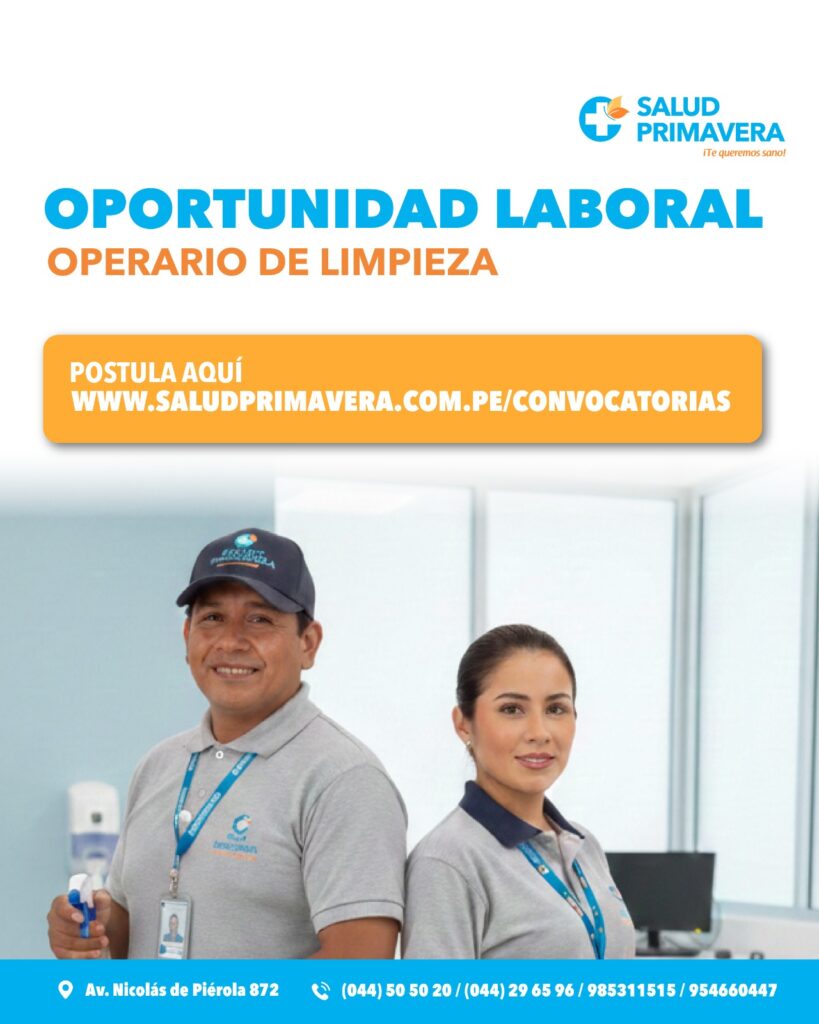 - Experiencia mínima de 1 año desempeñándose como operario de limpieza en empresas del sector salud o de servicios (deseable).